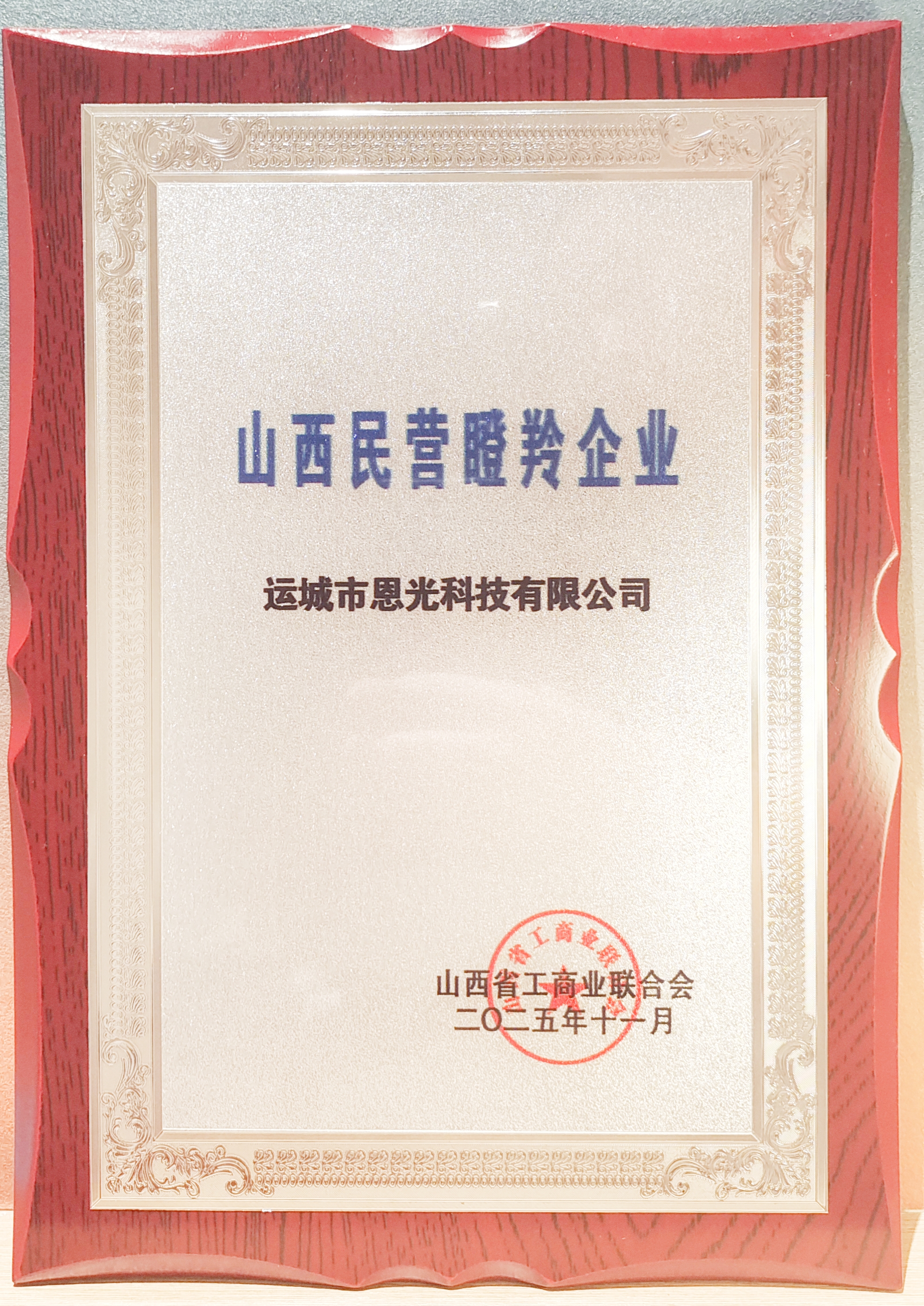 2025年11月11日,恩光科技荣获山西省工商业联合会正式授予的“2025年山西民营瞪羚企业”荣誉称号。这一称号不仅是对恩光科技进入高速成长阶段的肯定,更是对其创新驱动与技术领先地位的权威认可。